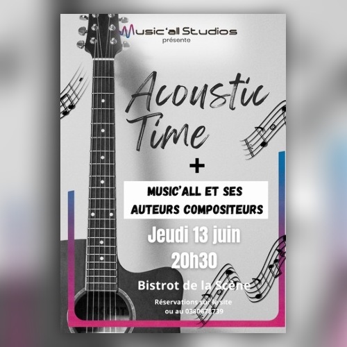 Afficher le planLa team acoustique de Music’all studios et une guitare reprendront des chansons de variétés françaises et internationales pour vous embarquer dans un concert tout en douceur et en subtilité .