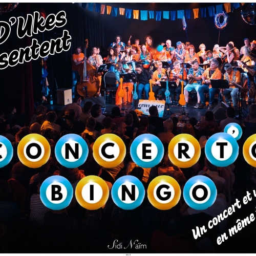 Afficher le planConcert'O Bingo des D'ukes (Collectif de Ukulélé, Dijon, 21) Les D'ukes, collectif de ukulélé Dijonnais, vous proposent un concert et un bingo en même temps ! Le principe est simple: à l'entrée vous recevez une grille de bingo, à remplir par vos soins avec vos numéros préférés. Ensuite la partie commence! On tire des boules, on chante des chansons et vous gagnez des lots quand vous réussissez à faire des lignes dans votre grille! Le but est bien entendu de passer un moment de partage festif et convivial !